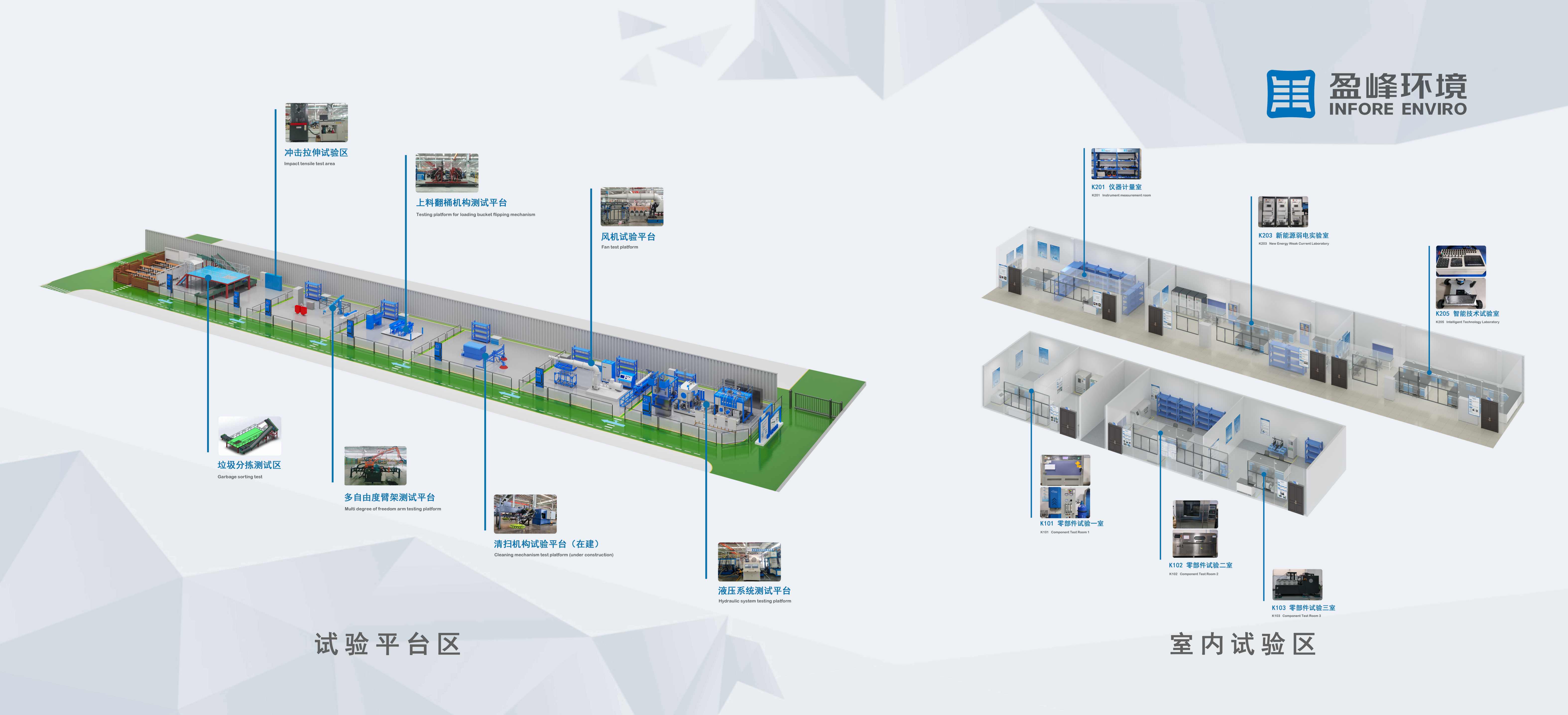 一直以來,盈峰環(huán)境將產(chǎn)品質(zhì)量作為企業(yè)發(fā)展的核心競(jìng)爭(zhēng)力。近兩年,公司投入近億元打造了國(guó)內(nèi)首個(gè)針對(duì)環(huán)保裝備設(shè)計(jì)的試驗(yàn)基地,試驗(yàn)基地整體占地2萬(wàn)㎡,設(shè)有試驗(yàn)場(chǎng)區(qū)和試驗(yàn)平臺(tái)區(qū),其中試驗(yàn)場(chǎng)區(qū)占地1.5萬(wàn)m²,分設(shè)通用、清掃產(chǎn)品、清洗產(chǎn)品、垃圾產(chǎn)品、轉(zhuǎn)運(yùn)站、市政產(chǎn)品、新能源產(chǎn)品、園林產(chǎn)品等8大產(chǎn)品試驗(yàn)區(qū),近30個(gè)模擬測(cè)試場(chǎng)景;試驗(yàn)平臺(tái)區(qū)占地5000 m²,分設(shè)6間試驗(yàn)室及7個(gè)試驗(yàn)平臺(tái),擁有HIL測(cè)試系統(tǒng)、西門子LMS振動(dòng)噪聲測(cè)試系統(tǒng)、德國(guó)DEWEsoft功率分析系統(tǒng)、離心風(fēng)機(jī)測(cè)試系統(tǒng)、液壓系統(tǒng)綜合測(cè)試系統(tǒng)等先進(jìn)測(cè)試系統(tǒng),以嚴(yán)格、科學(xué)、客觀的試驗(yàn)手段,深度還原實(shí)際作業(yè)場(chǎng)景,充分滿足車輛基本性能和各類產(chǎn)品作業(yè)能力的綜合自主試驗(yàn)需求。