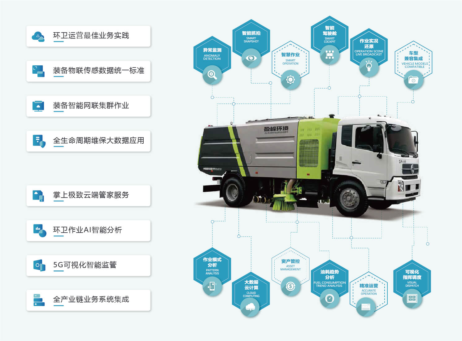 基于互聯(lián)網(wǎng)、物聯(lián)網(wǎng)、人工智能、大數(shù)據(jù)、云計算等技術(shù),公司自主開發(fā)國內(nèi)領(lǐng)先的環(huán)衛(wèi)全產(chǎn)業(yè)鏈智慧環(huán)衛(wèi)云平臺,該平臺擁有58余項智慧環(huán)衛(wèi)相關(guān)的軟件著作權(quán)及專利,匯集全球智慧融合“大云物移智”技術(shù),實時互聯(lián)城市服務(wù)中的人、車、物、事,形成全域服務(wù)治理模式,并以“數(shù)智化”賦能城市面貌出新出彩。目前平臺已在全國254個城市落地環(huán)衛(wèi)數(shù)字化運營項目,為全國超10萬臺產(chǎn)品的客戶提供智能服務(wù),為智慧城市建設(shè)實現(xiàn)高效的生產(chǎn)空間、宜居的生活空間、和諧的生態(tài)空間賦能助力。